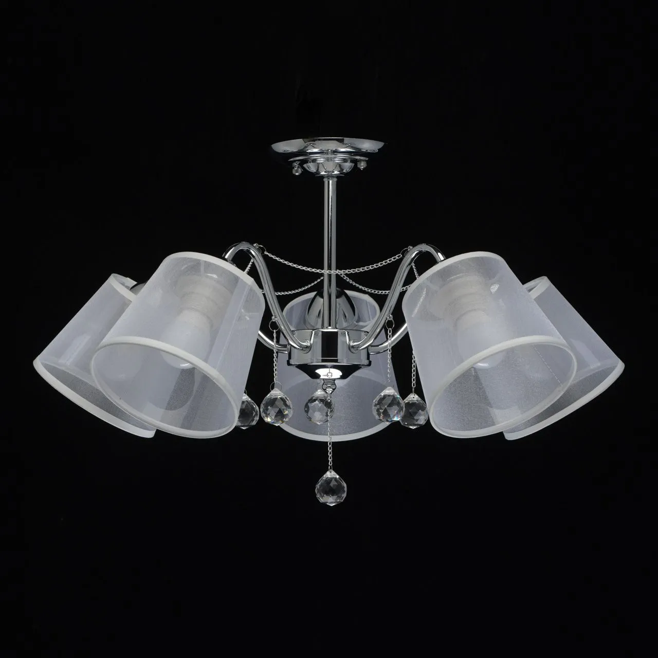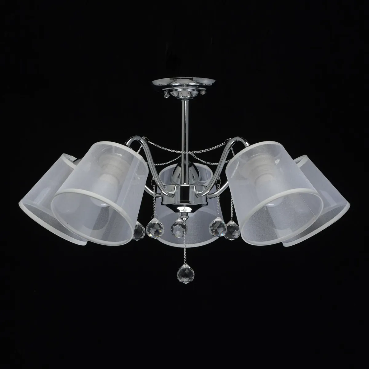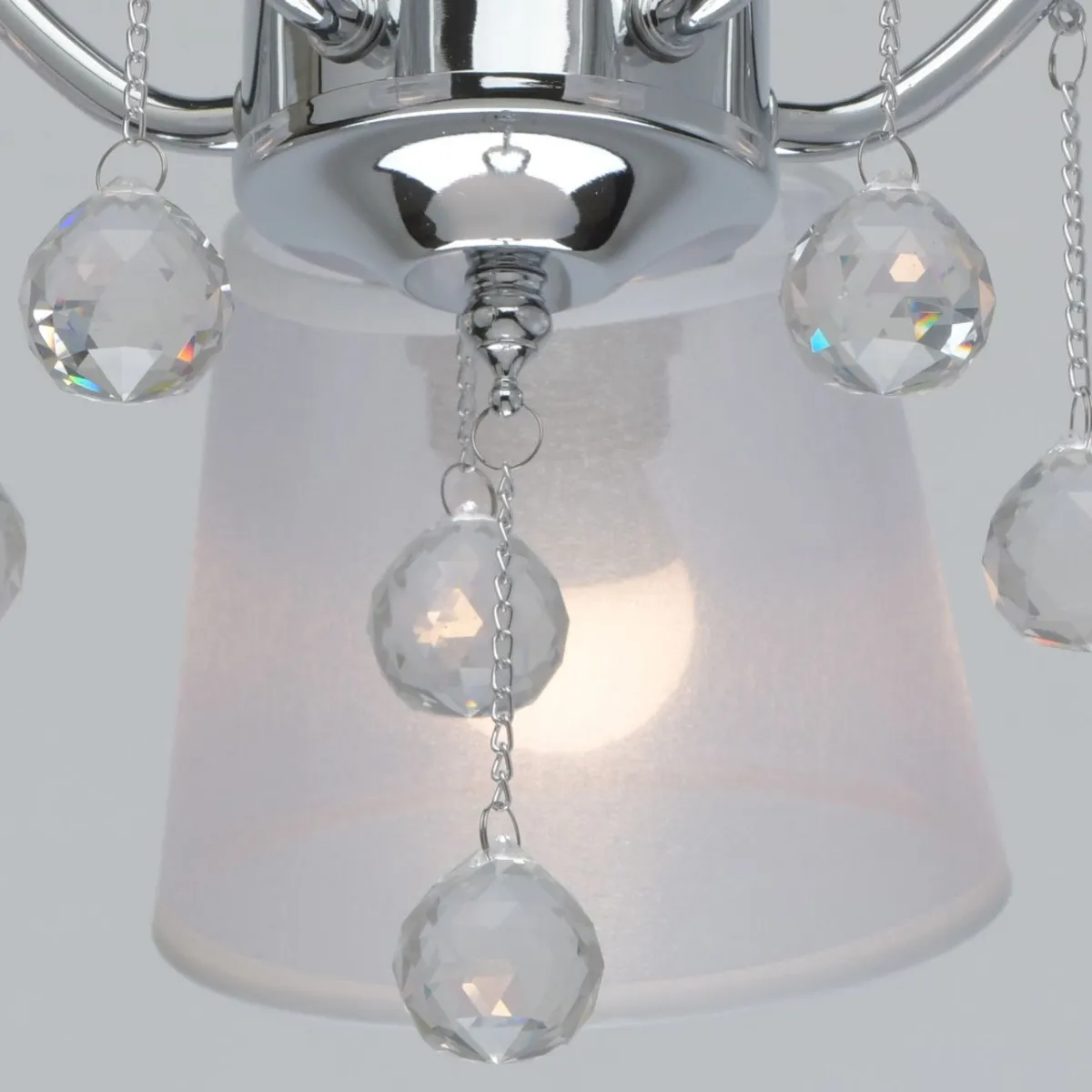 Основание/ металл/ хром. Абажуры/текстиль/ белый. Декор/ прозрачный хрусталь