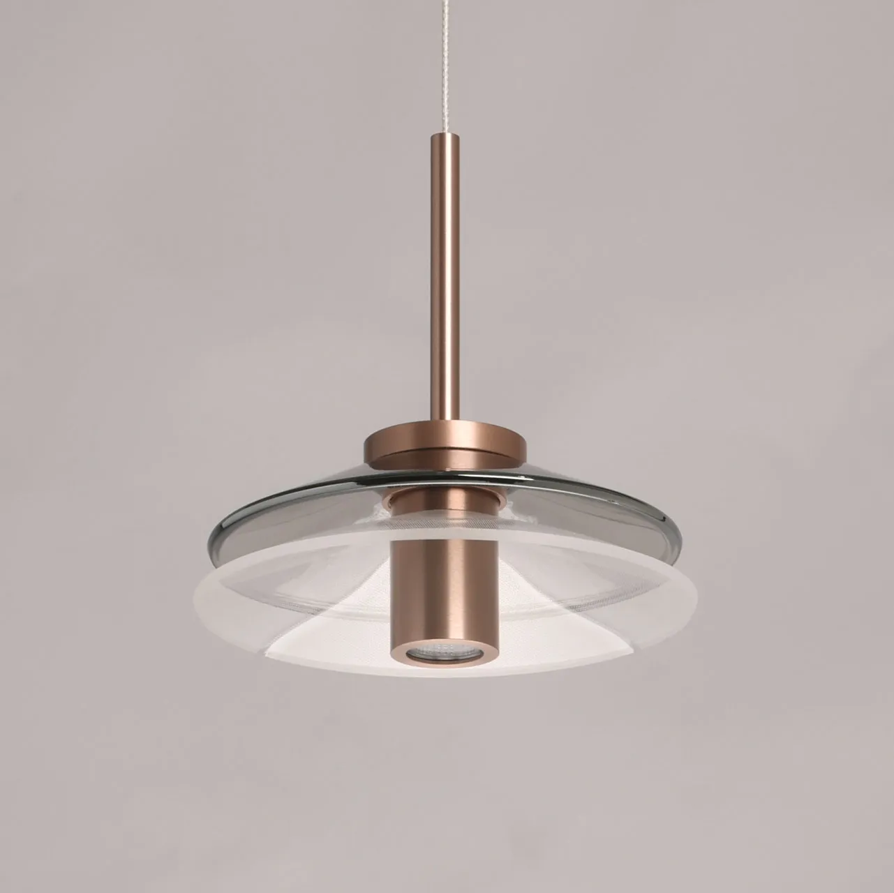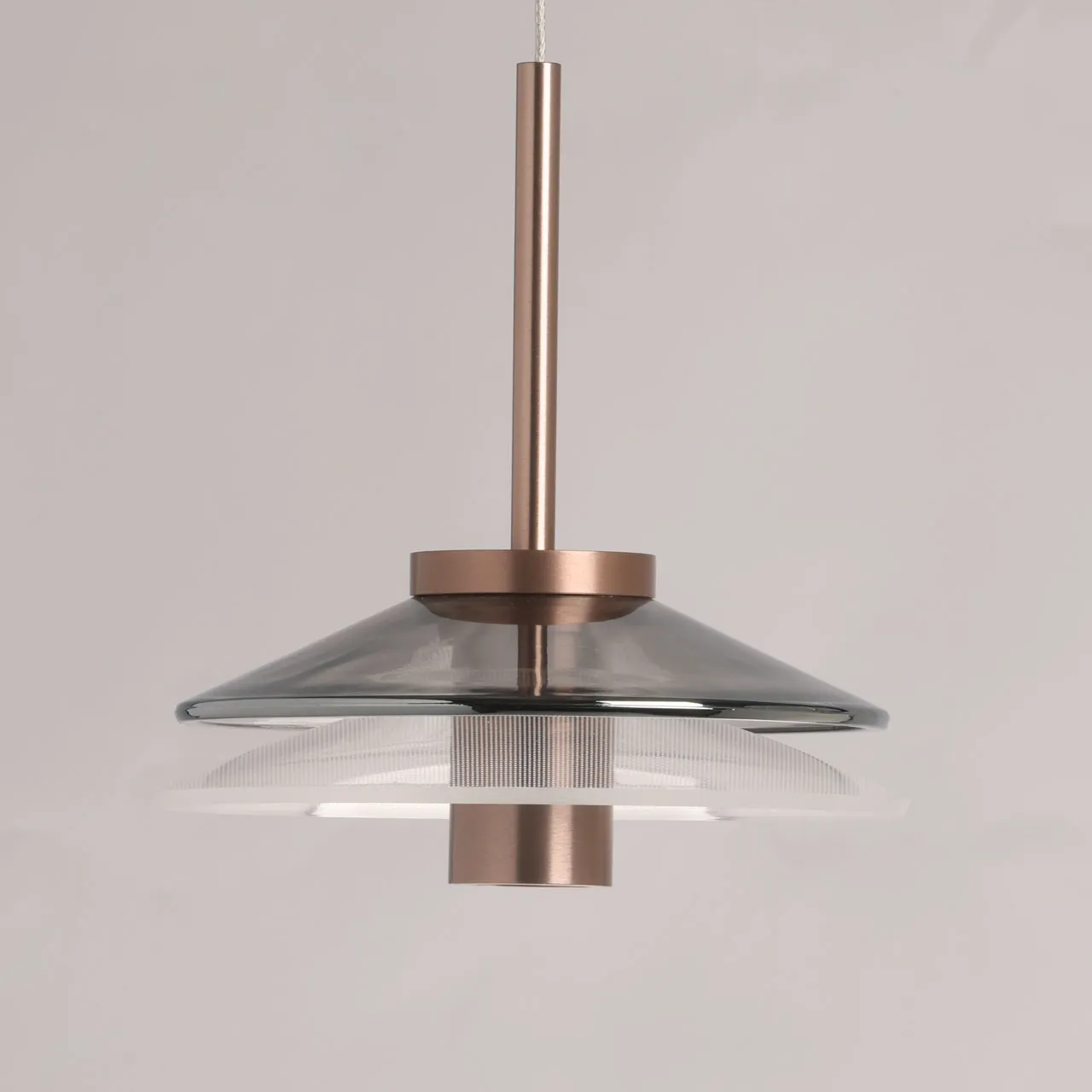 Основание/ металл, сплав алюминия/ медь, черный Плафон/ стекло, акрил/ дымчатое, прозрачный
