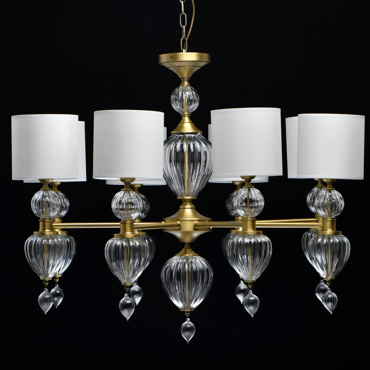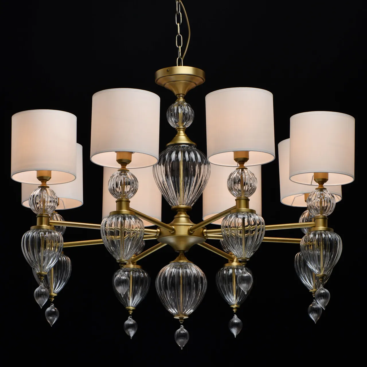 Основание/металл/латунь Абажур/текстиль/белый Декор/стекло