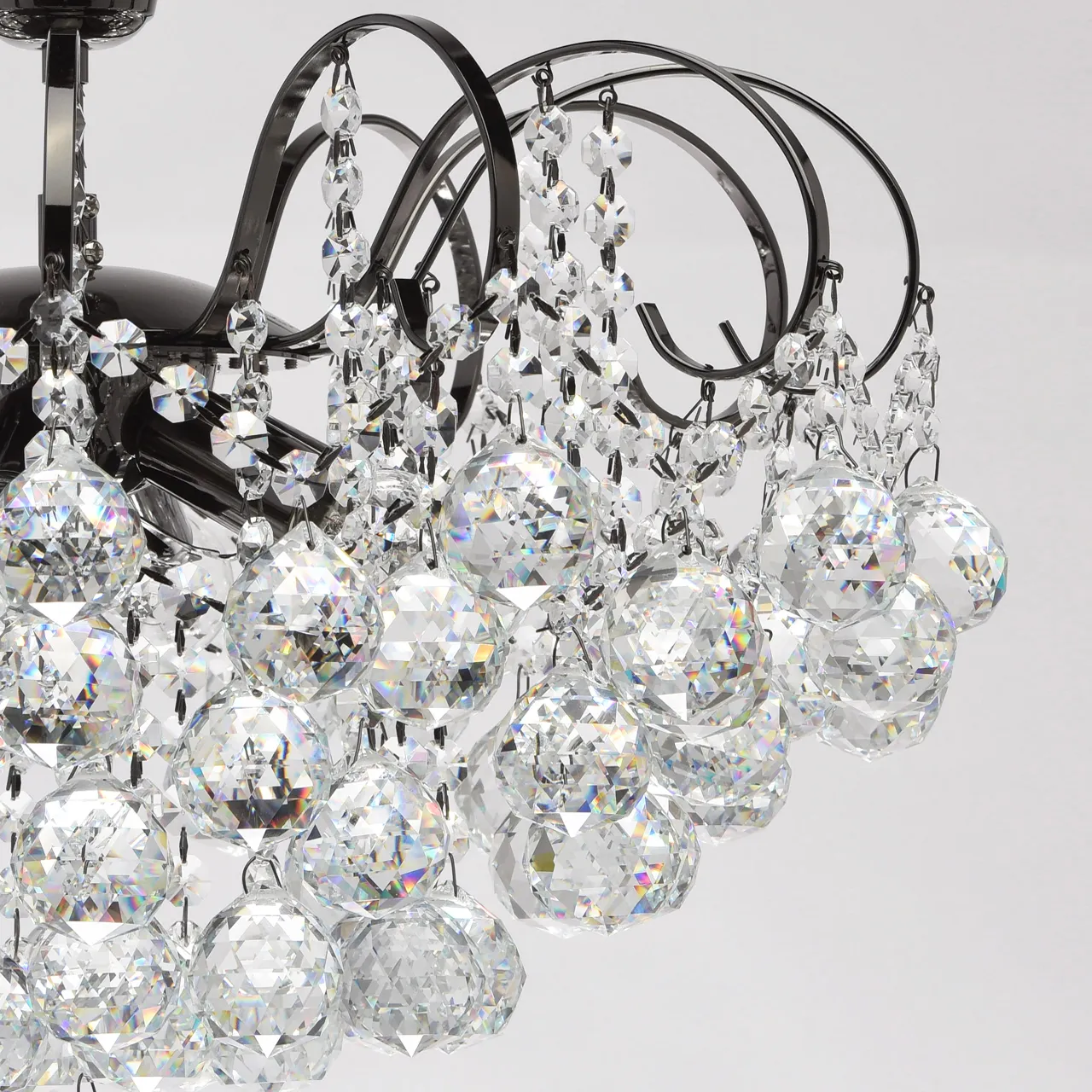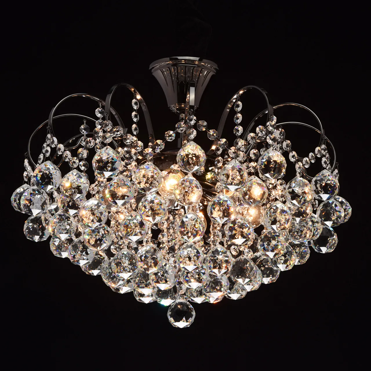 Металлическое основание цвета никеля, декоративные подвески из хрусталя.